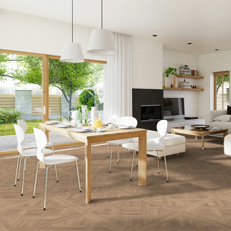 細膩的幾何線條,交織出豐富的木色層次,為空間注入獨特的藝術感與溫暖氛圍。 Geeen-Flor 全新拼花木紋系列,靈感源自歐洲中古室內拚木花色,將經典美學與現代工藝完美融合。 作為歐洲頂級地板品牌的代表之作,它不僅重現實木的真實質感,更以獨家設計引領空間美學新風潮。